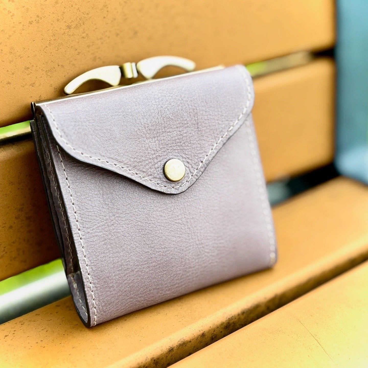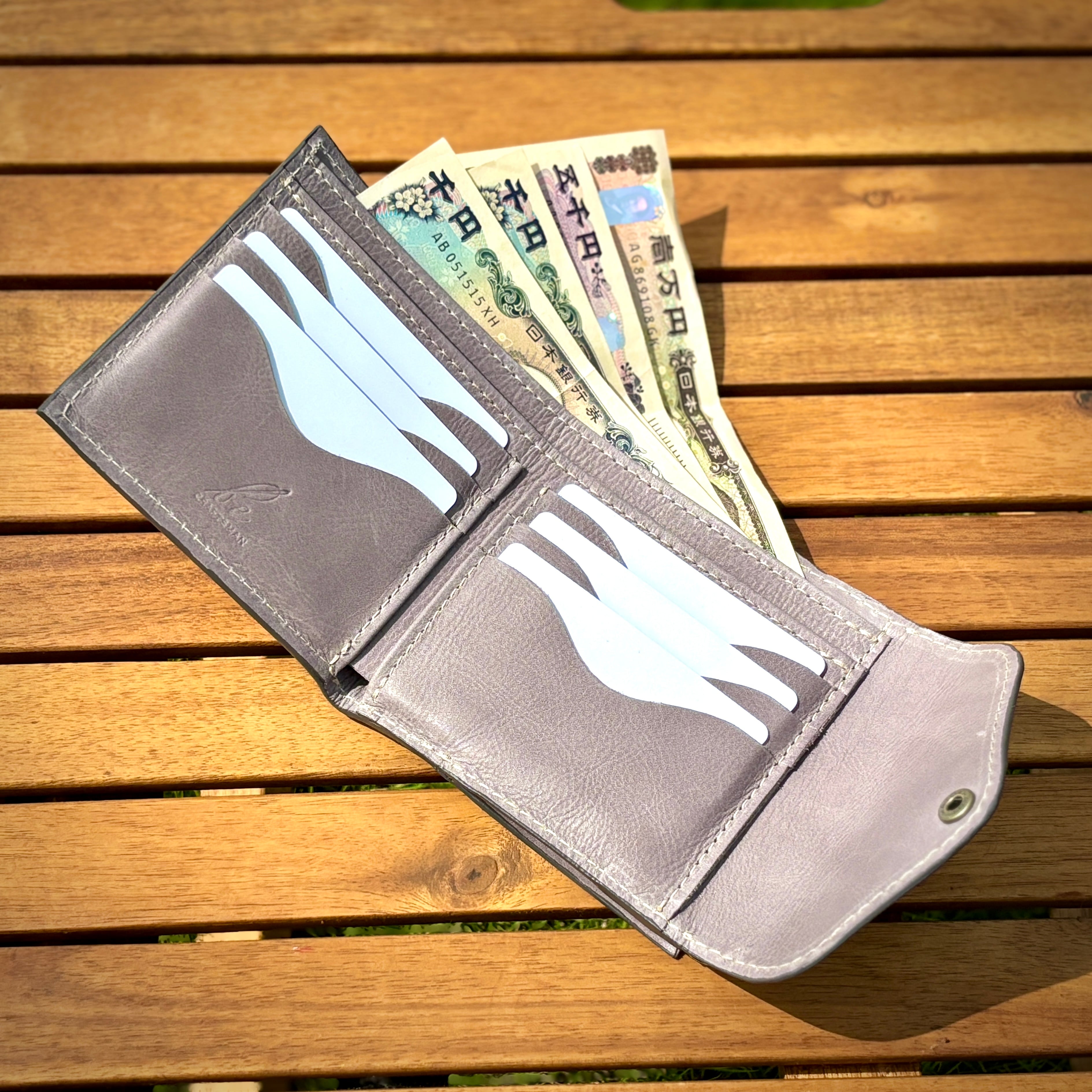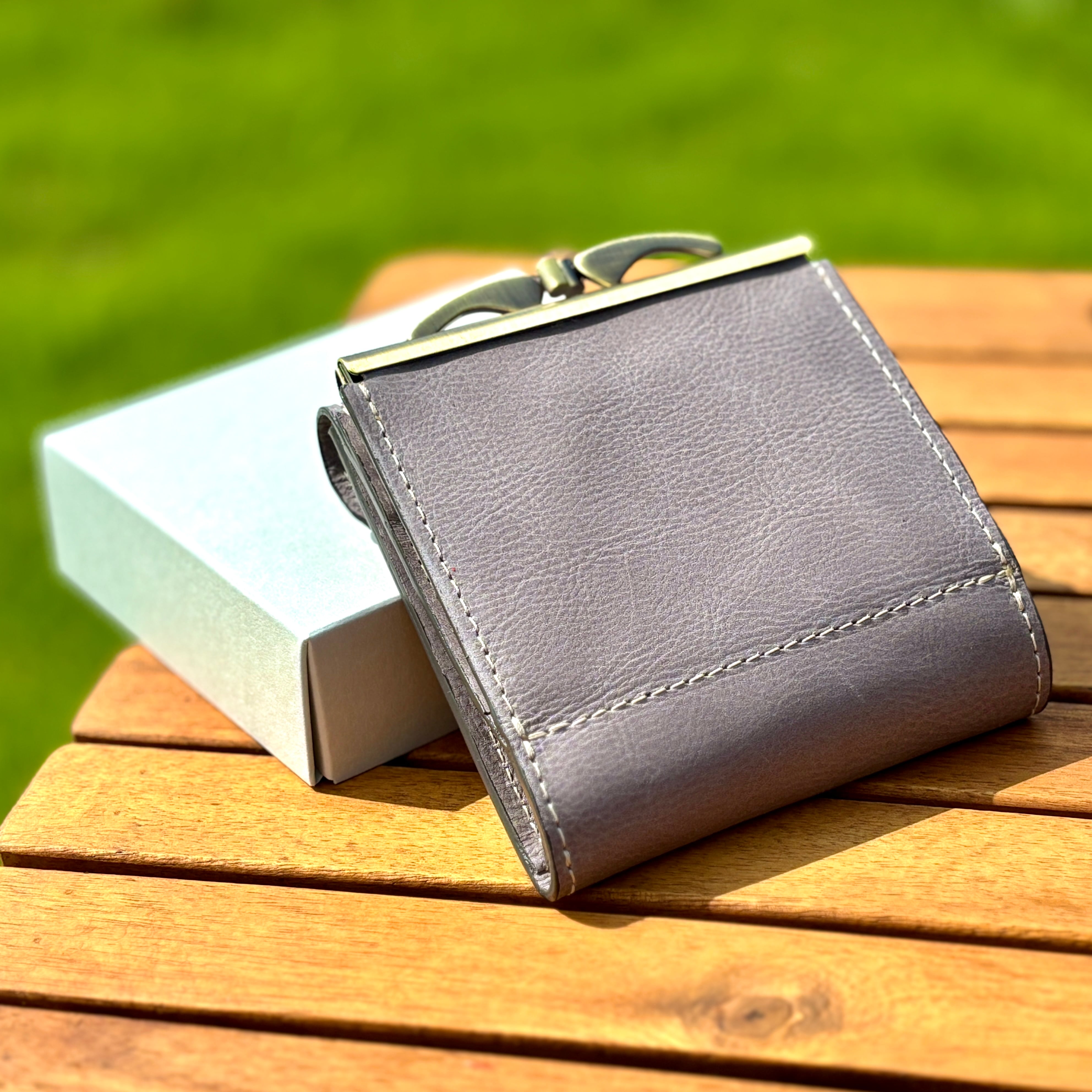 ヌメ革 がま口 三つ折り財布 グレー